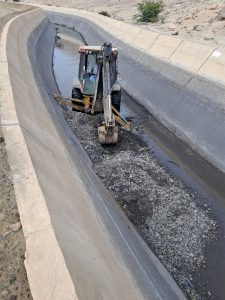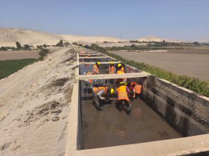 Mientras las maquinarias están trabajando en Sector Irchim y en Nepeña (toma 18) la eliminacion de sedimentos en la caja hidráulica.