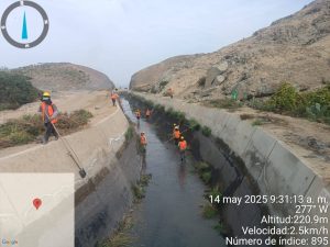 Otro frente de trabajo se úbico en el canal Aéreo, para la eliminación de sedimentos,simultaneamente en el Canal Huaca – Nepeña, han trabajado dos cuadrillas , desde la progresiva 20+560 hasta el túnel 12, y desde sector Agroberries hasta la toma 6c, se ha realizado los trabajos manuales.